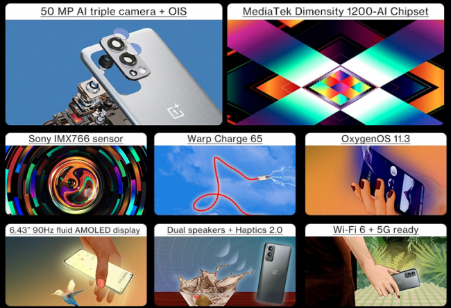 Работает новинка под управлением чипа MediaTek Dimensity 1200, который по производительности сопоставим со Snapdragon 865 и Snapdragon 870. Также в смартфоне установлен аккумулятор на 4500 мАч, который поддерживает фирменную зарядку Warp Charge на 65 Вт (идёт в комплекте), основная камера на 50 МП (Sony IMX766) + 8 МП (ширик) + 2 МП (монохромный сенсор) и фронтальная на 32 МП. Из коробки в смартфоне установлена операционная система Android 11 и фирменная оболочка OxygenOS.