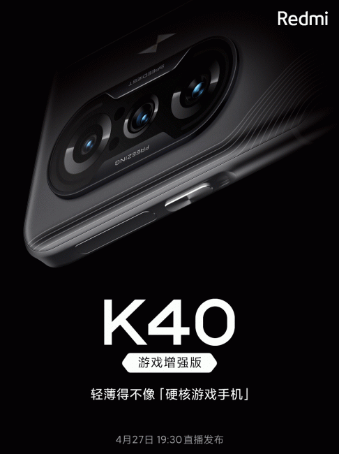 Итак, согласно официальному тизеру в социальной сети Weibo, аппарат покажут на мероприятии в Китае 27 апреля. Что интересно, устройство станет частью линейки Redmi K40. Согласно приглашению, смартфон назовут Redmi K40 Game Enhanced Edition. Он сможет похвастаться необычной расцветкой, а также игровым режимом, который будет активироваться переключателем на корпусе. Он, кстати, также будет включать подсветку вокруг тройной камеры и кнопки для игр на боковой грани.