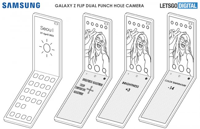 Кроме того, в патенте описана двойная фронтальная камера (причем без вспышки, с использованием света дисплея) и подэкранный сканер отпечатков пальцев. Последнего, кстати, нет ни у одного складного смартфона — в основном сканеры в таких устройствах находятся сбоку.