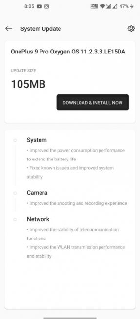 OnePlus продолжает улучшать с помощью обновлений свои новые смартфоны OnePlus 9 и OnePlus 9 Pro. Что известно Согласно официальному форуму, разработчики компании выпустили очередную прошивку для устройств. Система весит 105 МБ. Она получила номер сборки OxygenOS 11.2.3.3 и небольшой, но полезный