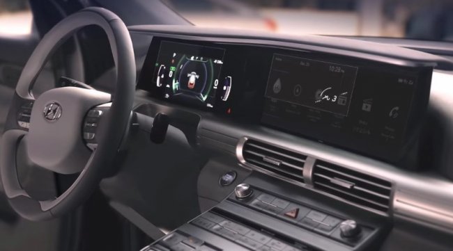 Водородный кроссовер NEXO будет предлагаться с различными продвинутыми системами помощи водителю, включая систему кругового обзора, которая использует широкоугольные камеры с каждой стороны автомобиля, чтобы показывать области, которые невозможно заметить традиционным зеркалом заднего вида. Затем изображения с этих камер будут отображаться на «экране центрального кластера».