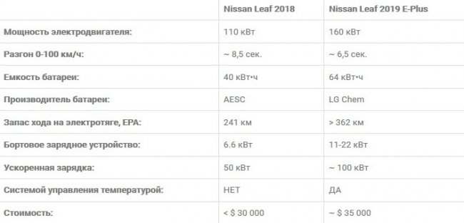 Ожидалось, что электромобили Nissan Leaf нового поколения будут оснащены более емкими батарейными блоками, что позволит увеличить их запас хода до 350 км в час. Таким образом, «Лиф 2.0» смог бы составить полноценную конкуренцию более дальнобойным моделям – Tesla Model 3 и Chevrolet Bolt EV. Но в итоге его спецификации пробега на одном заряде ограничились на уровне 240 км (по циклу EPA) и батареей на 40 кВт*ч.