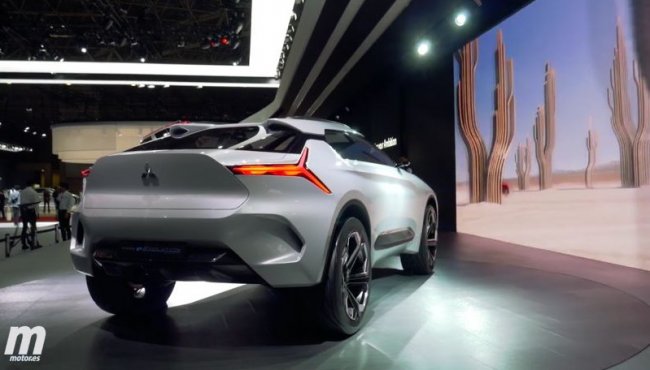 Футуристичный электрокроссовер «Митсубиси» наделен довольно агрессивным фронтэндом с большими воздухозаборниками, расположенными под фарами, которые, по словам производителя, используются для охлаждения электрических тормозных суппортов.