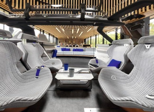 Внутри, благодаря особой компоновке элементов, электромобиль «Симбиоз» больше похож на гостиную комнату. При автономном режиме движения все сделано для того, чтобы обитатели «жилища на колесах» смогли комфортно общаться между собой, просматривать фильмы или пользоваться персональными гаджетами. Более того, автомобиль будет узнавать, кто из членов семьи сел на конкретное место и подстраивать под него сидения и мультимедийные функции.