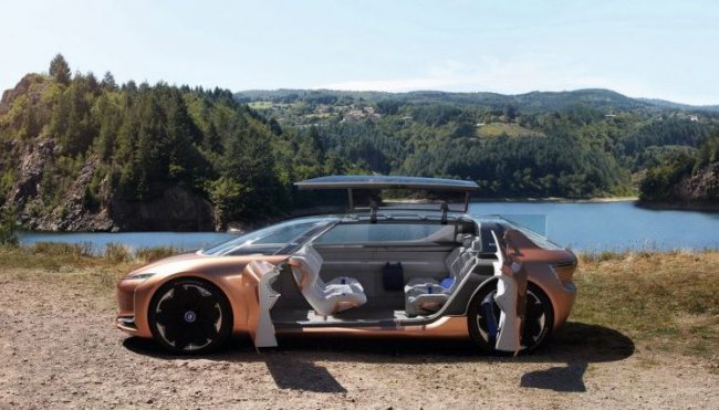 Концепция электромобиля Symbioz предусматривает возможность обмена энергией между автомобилем и домом. Энергия передаётся через единую для машины и жилища сеть и управляется искусственным интеллектом, который угадывает потребности человека.