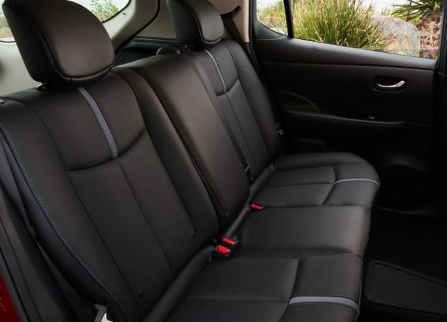 Интерьер обновленного Leaf Nissan также освежил. Как заявляет производитель, салон электрокара получил более качественные материалы, улучшенные сборку и отделку, которые «облагораживают жизнь на борту». Внутри сиденья покрыты ярко-синими строчками, те же элементы обрамляют руль и приборную панель. С увеличением батареи вместительность салона не пострадала. Напротив, багажник получил еще больше свободного пространства, вместительность которого теперь составляет 435 литров.