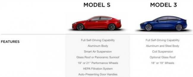 Для бюджетной модели не добавили премиум-опций, предлагаемых покупателям Tesla Model S, в частности: система фильтрации HEPA, полностью алюминиевый корпус, «умная» пневматическая подвеска, панорамная крыша, автоматическое выдвижение дверных ручек, колеса размером 21 дюйм.