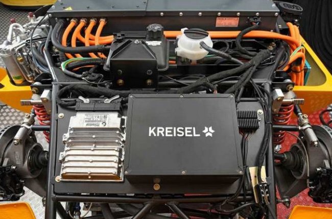 «Высокоэффективная литий-ионная батарея емкостью 53 кВт*ч, установленная в Kreisel EVEX 910e, который весит 1100 килограммов, обеспечивает реалистичный запас хода в 350 км. Чтобы разместить аккумулятор, а также силовую передачу сзади, рама оригинала была слегка изменена. Кроме того, воздушное охлаждение исторического автомобиля было заменено системой охлаждения, которую Kreisel специально разработала для высокопроизводительного привода», - сообщается в пресс-релизе компании.