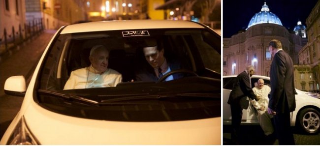 Стоит отметить, что Франциск, на самом деле, не стал первым папой, который пользуется электрокаром: ранее Бенедикт XVI получил в подарок кастомизированный Kangoo Z.E. от Renault.