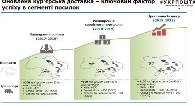 Согласно представленному плану, Укрпочта за 5 лет увеличит доход от деятельности предприятия в три раза до 13 млрд грн и займет более 35% рынка почтово-логистических услуг. Это будет обеспечено интенсивной работой в сегменте доставки посылок, международного обмена и финансовых услуг.