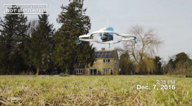 First-ever #AmazonPrimeAir customer delivery is in the books. 13 min—click to delivery. Check out the video: https://t.co/Xl8HiQMA1S pic.twitter.com/5HGsmHvPlE