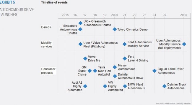 «Скоро мы увидим появление новых бизнес-моделей и услуг, — сказал партнер McKinsey Сурья Рамкумар. — Это произойдет в связи с ростом автономности транспорта, что увеличит спрос на датчики и программное обеспечение».
