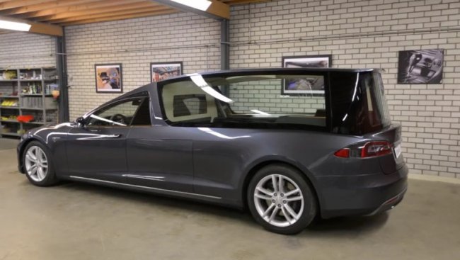 Теперь же, неугомонные автолюбители замахнулись на самое сокровенное и сделали из Tesla Model S катафалк. Работа была выполнена под заказ специалистами голландского тюнинг-ателье RemetzCar для похоронного бюро Van der Lans & Busscher BV. Созданный, чтобы обеспечить возможность последней поездки «с нулевым уровнем выбросов», катафалк из Tesla Model S, по заверению заказчика, является первым в своем роде.