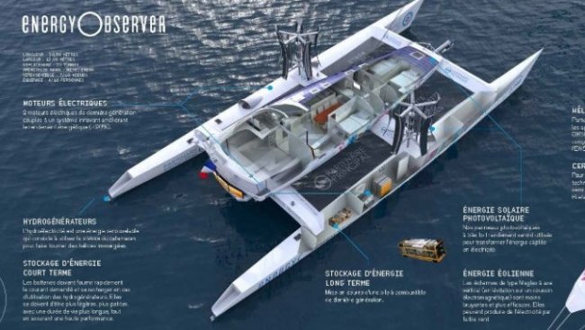 "Наша яхта станет первым судном с автономным циклом производства водорода", — сообщает автор проекта Викторин Эрузард, который планирует совершить кругосветное путешествие вместе с Жаком Делафоссом, документалистом и профессиональным аквалангистом.