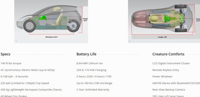Трехколесный автомобиль Solo рассчитан только на одного человека и напоминает мини-электрокары из фантастических фильмов. Шасси выполнено из композитного материала на основе углепластика, благодаря чему машина весит мало и отличается хорошей маневренностью. Всего лишь за 8 секунд Solo разгоняется до 96 км/ч. Максимальная скорость при этом составляет 128 км/ч, сообщает Хайтек.
