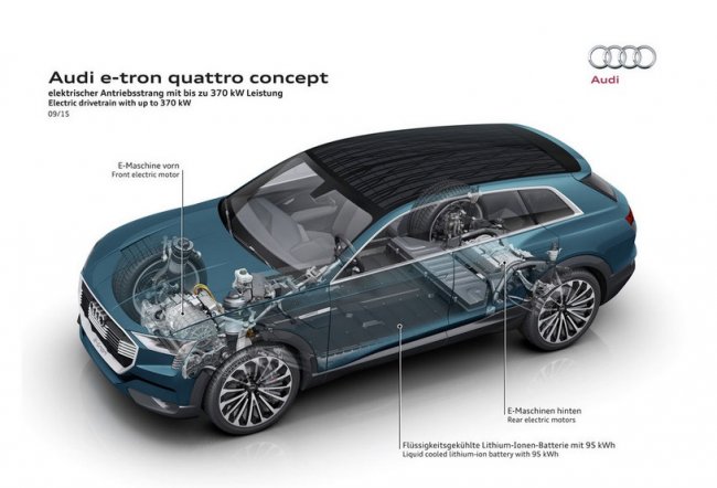 На выставке электроники Audi не только показала внешний вид, но и раскрыла все технические особенности будущего электрического вседорожника. Так, силовая установка машины будет состоять из трех электромоторов с общей мощностью около 500 л.с. или 370 кВт, и позволит ей при необходимости передавать крутящий момент дополнительно на заднюю ось, что придаст ей максимум устойчивости и динамики.