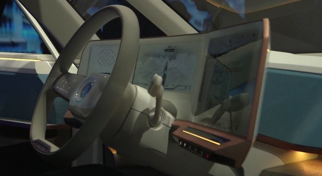 Внутри нового электрического концепта тоже много интересного. Более того, по заявлению Volkswagen дизайн интерьера Budd-e представляет собой «квантовый скачок», который можно сравнить с переходом от обычных телефонов к смартфонам. Так, инновационный автомобиль получил цифровую приборную панель, с тремя большими сенсорными дисплеями. Причем взаимодействовать с органами управления можно не только прикосновениями, но и голосовыми командами и жестами.