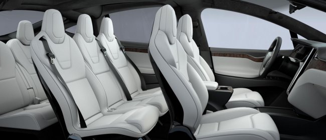 Салон Model X может, в зависимости от пожелания покупателя, вмещать как 6, так и 7 человек (2+3+2 или 2+2+2). Сиденья третьего ряда могут полностью складываться в уровень пола, но даже семиместная версия сохранит достаточно место для багажа, ведь грузовой отсек кроссовера Tesla находится впереди под капотом – там, где у традиционных авто находится бензиновый двигатель. Также, в помощь для любителей активного отдыха инженеры компании разработали специальный прицепной контейнер для перевозки горнолыжного снаряжения или велосипедов.