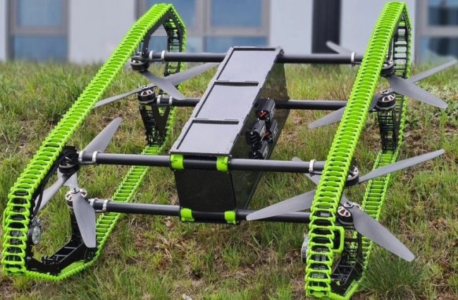 Дрон-вездеход летает по воздуху и ездит по земле на гусеницах - «Транспорт»