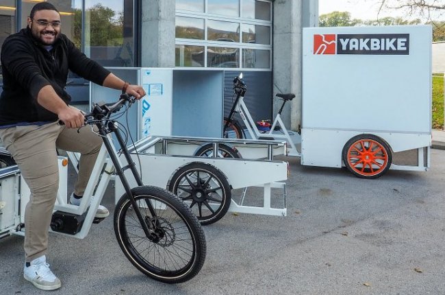 Ограничения стандартной цепной трансмиссии являются серьезным препятствием росту популярности электротрайков для перевозки небольших грузов. Однако трайк Yakbike, разработанный компанией Shematic из Швейцарии, лишен этого недостатка — он получил электрическую бесступенчатую трансмиссию. Его грузовая платформа расположена ниже оси задних колес, а на поворотах передняя часть может наклоняться.