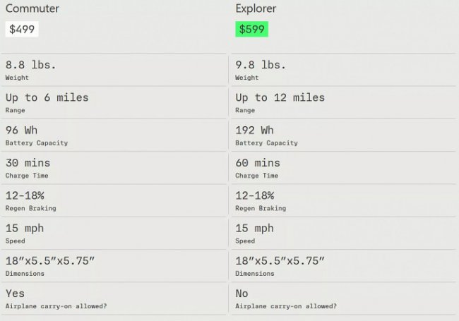 Вторая деталь — пульт дистанционного управления, который крепится к рулю. Он необходим для включения двигателя и рекуперативного торможения. Clip выпускается в двух версиях — Commuter и Explorer с емкостью аккумуляторов, соответственно, 96 и 192 Вт⋅ч. Запас хода электробайка версии Commuter от 7 до 10 км, максимальная скорость — 25 км/ч. Цена — $500. Explorer удвоит проходимую дистанцию и стоит $600.