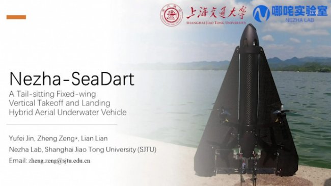 Инженеры из Шанхайского университета Цзяо Тун представили новый тип беспилотника. Аппарат Nezha-SeaDart не только летает в воздухе как самолет, но и может двигаться под водой. Название для него выбрано неслучайно и намекает на связь дрона с древним божеством, которое китайцы отождествляют с силой и храбростью.