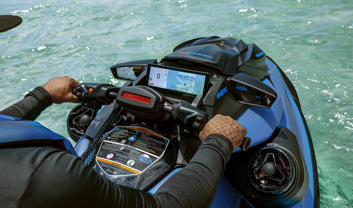 RXP-X получил новый 1,6-литровый двигатель Rotax с наддувом мощностью 325 л.с., который может довольно быстро опустошить 70-литровый бак, если гонять на предельных скоростях. Но гидроцикл сам следит за расходом топлива и напоминает, когда пора вернуться для дозаправки. Информация выводится на новый 10,25-дюмовый сенсорный дисплей — тоже один из самых больших для гидроциклов. На нем можно увидеть скорость, обороты двигателя, уровень топлива, режимы движения, предупреждения, данные о производительности и многое другое.