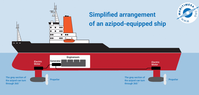 Ледоколы будущего будут оснащены азимутальными движителями (азиподами). Их особенность — грибной винт устанавливается на валу электродвигателя, что позволяет передавать вращающий момент непосредственно на винт, минуя промежуточные валы или редукторы, а само судно сможет поворачиваться на 360 градусов.