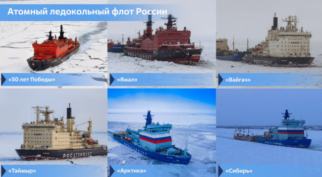 На сегодня ледокольный флот России самый мощный и многочисленный в мире. В его составе 43 ледокола, 8 из которых — атомные. Из них 4 — суда старшего поколения «Таймыр», «Вайгач», «Ямал» и «50 лет Победы». Еще четыре — новые атомоходы «Арктика», «Сибирь», «Урал» и «Якутия».