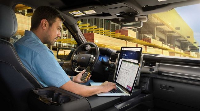 Электропикап получил множество продвинутых функций, в том числе работающий на трассах автопилот Blue Cruise, учитывающий расположение зарядных станций навигатор, поддержку обновлений «по воздуху».