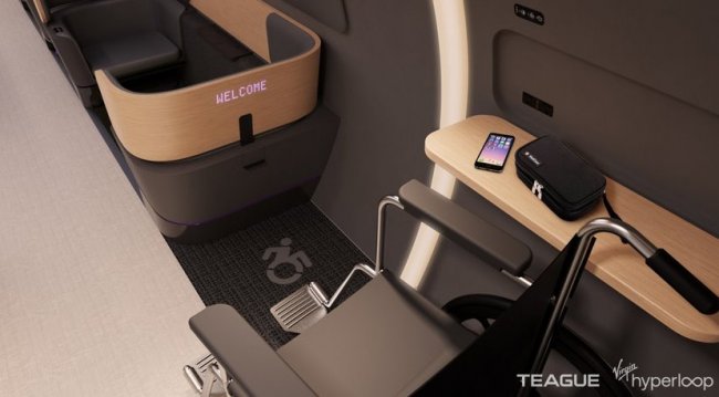 Будущие вагоны Virgin Hyperloop также оснастят беспроводными зарядными устройствами для гаджетов пассажиров, светящейся панелью на потолке, имитирующей люк в крыше, через который видно солнечное небо, и светодиодными дисплеями, отображающими время до прибытия и скорость движения.