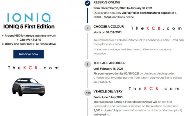Официально характеристики нового электромобиля пока не объявлены. Однако 23 декабря на сайте австрийского дилера Hyundai, по-видимому, непреднамеренно появился раздел предварительного заказа IONIQ 5. Доступ к странице быстро закрыли, однако некоторые пользователи успели сделать скриншоты, зафиксировав сведения о технических параметрах модели.