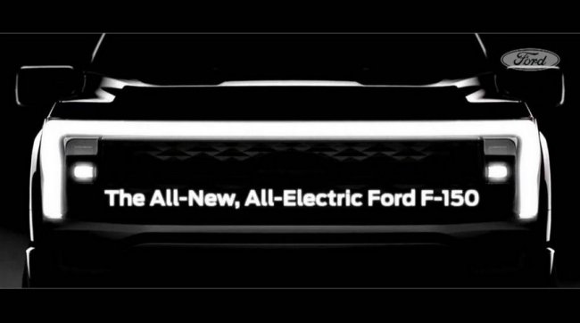 Тизерное изображение F-150 представляет собой черно-белую фотографию передней части электропикапа. Самая заметная деталь на ней — П-образная светодиодная полоса, которая протянулась на всю ширину передка и охватывает сверху и с боков облицовку, заменяющую на электромобилях декоративную решетку радиатора.