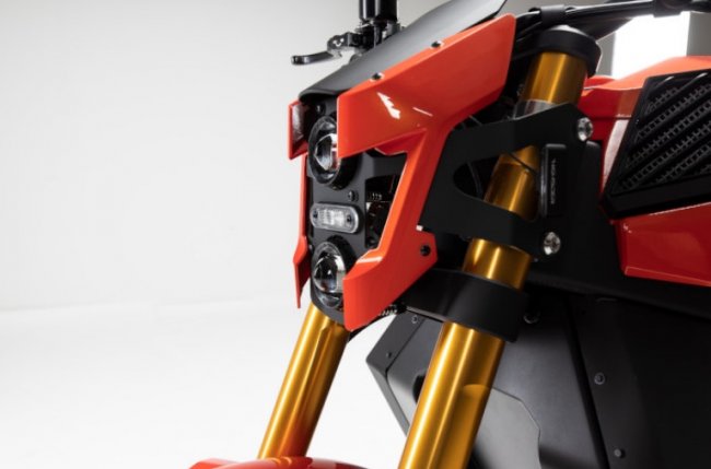 Передняя часть мотоцикла выглядит более привычно, за исключением необычных фар.