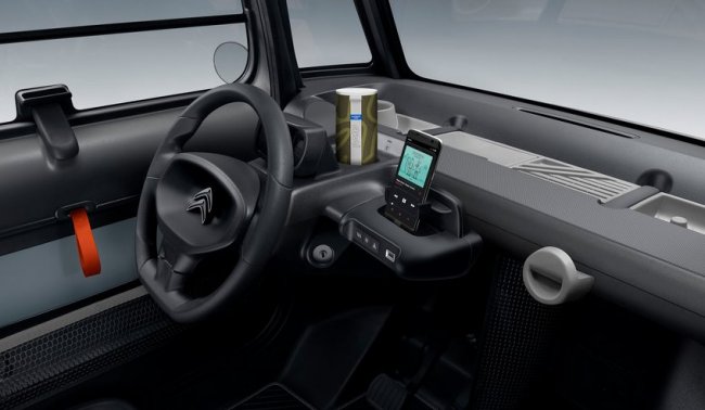 В конструкции Citroën Ami присутствует множество интересных решений. Одно из них — максимальная простота: симметричные двери, бамперы и даже нижние панели кузова сводят количество уникальных компонентов к минимуму. Интерьер машины также минималистичен настолько, насколько это возможно. Например, для использования громкой связи или прослушивания музыки придется задействовать собственные смартфон и Bluetooth-колонку. Впрочем, в этом тоже есть польза — мобильное приложение Citroën Ami позволит выстраивать навигацию, следить за уровнем заряда и сервисной информацией.