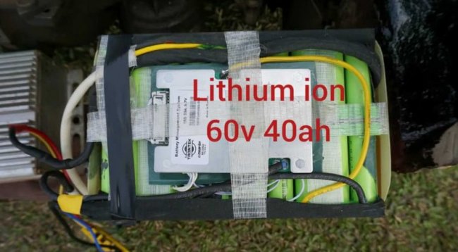Электрический мотор запитали через универсальный 4-киловаттный контроллер от литий-ионной аккумуляторной батареи на 60 вольт емкостью 40 А·ч. Таким образом, при запуске электродвигателя начинает вращаться и коленвал, а с него через трансмиссию крутящий момент передается на колеса машины.