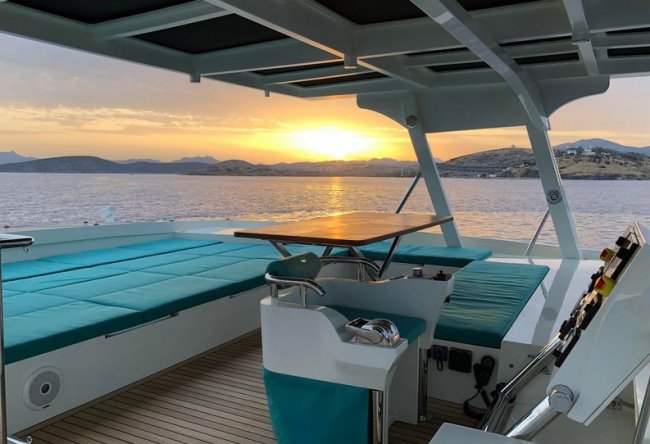 Панель управления двигателем и приборы расположены на открытом мостике. Остальные органы управления находятся в рубке на верхнем уровне яхты. В ней также установлены три кресла для отдыха и диван, который можно использовать как лежак для принятия солнечных ванн. В случае плохой погоды верхняя палуба закрывается крышей.