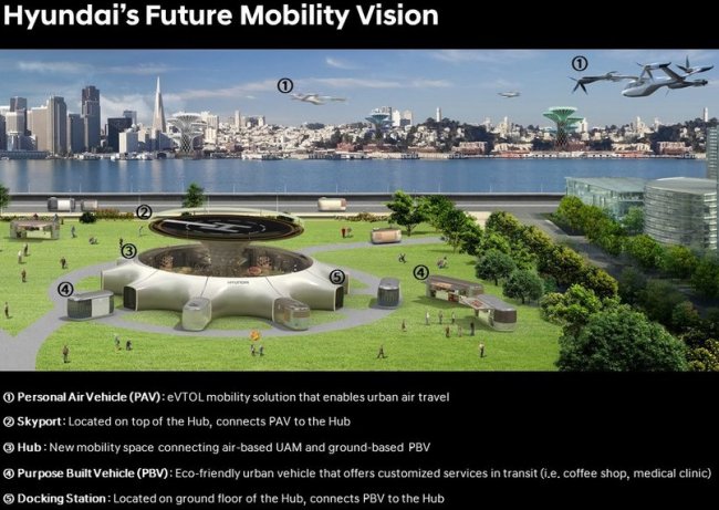 Помимо самого летающего такси, на Hyundai также представил концепцию транспортных хабов (Purpose Built Vehicles или PBV), которые будут не только принимать и обслуживать летательные аппараты и наземный транспорт, но и смогут размещать на своей территории торгово-развлекательные центры, кинотеатры, музеи и даже медицинские учреждения.