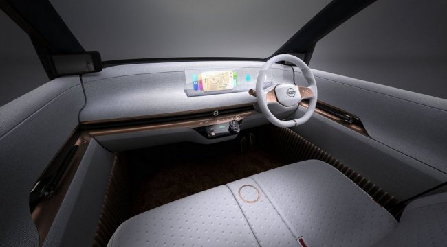 Nissan обещает, что IMk будет располагающим к себе и максимально комфортным. Габариты автомобиля, 3434х1512х1644 мм вынуждают усомниться в просторности салона, но старший дизайнер Сатору Тай объясняет секрет – проектировщики по возможности отказались от выпуклых деталей в пользу плоских, и это помогло создать просторный и элегантный салон.