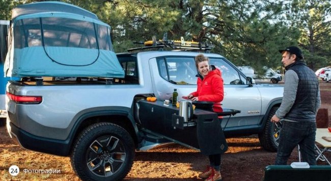 Мощнейшая батарея электромобиля-кемпера Rivian R1T обеспечит работу полевой печи - «Транспорт» » Новости Электроники.