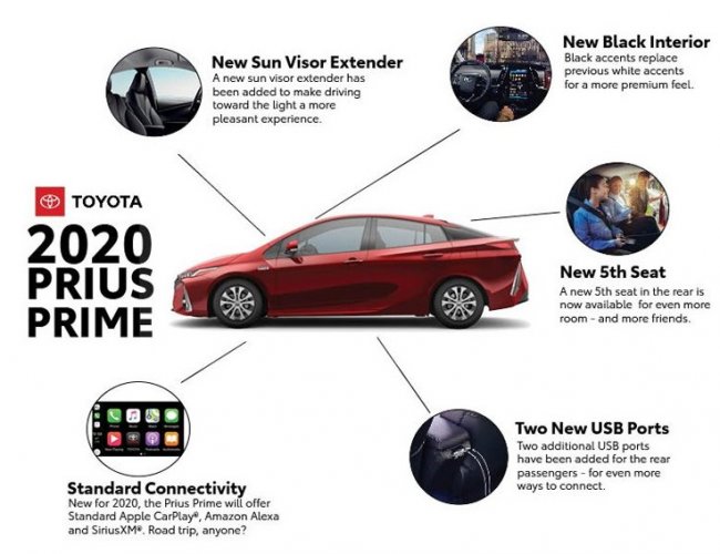 Обновленная модель Toyota Prius 2020 года впервые получит новые элементы пользовательского интерфейса, включенные в базовую комплектацию. Компания добавила информационно-развлекательную систему сопровождения водителя от Apple CarPlay во все свои автомобили, а в 2020 Toyota Prius Prime в стандартной комплектации появится также помощник Amazon Alexa и спутниковое радио SiriusXM.