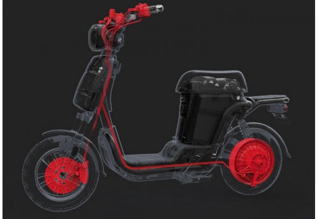 Плавную езду обеспечивает передняя вилка с амортизацией и задняя подвеска на двойных спиральных амортизаторах. В конструкции мопеда использован передний гидравлический дисковый тормоз. Сзади применяется барабанный тормоз с тросовым приводом. Предусмотрено и рекуперативное торможение с помощью мотора. По словам производителя, тормозной путь равен всего 4,5 м. Транспортное средство запускается одной кнопкой и оснащено большим цифровым дисплеем.