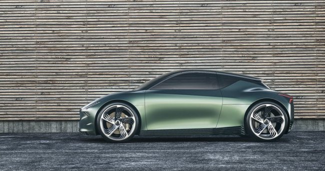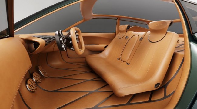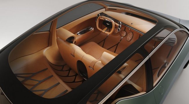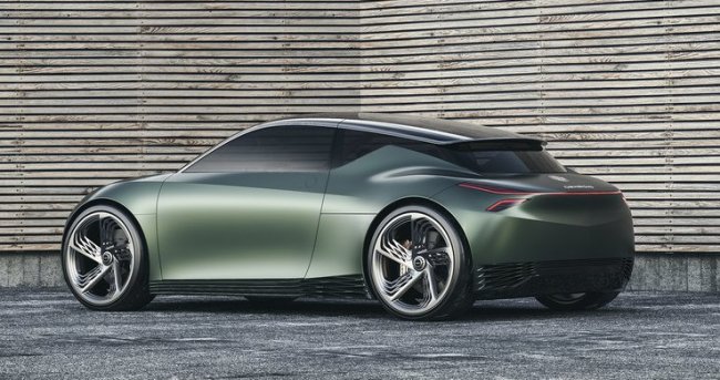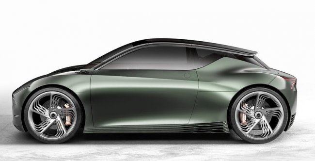 Представленный на презентации в матовом зеленом (Hunter Green) оформлении кузова Mint – это седан с очень короткими передним и задним свесами. Передние и задние фары растянуты на углы, верхние пары соединены световым элементом, протянутым через весь капот.