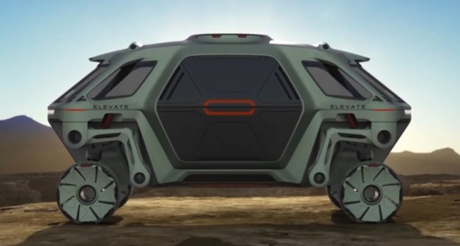 Если рассматривать Elevate с точки зрения автомобильной «анатомии», то в нем поперечные балки моста и рычаги подвески заменены четырьмя автономно управляемыми колесами, поставленными на роботизированные «ноги». У каждой ноги есть пять углов наклона благодаря вертикальным и горизонтальным шарнирным сочленениям с возможностью поворота колеса на 360 градусов по вертикальной оси. Интегрированные в ступицу колеса моторы обеспечивают тяговую силу автомобиля.