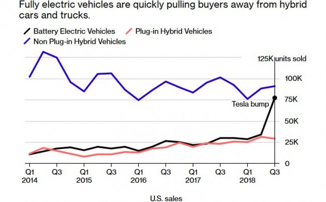 «С возросшей активностью компании Tesla компромиссные транспортные средства становятся неактуальными», - пишет американское издание. И действительно, гибриды и плагин-гибриды всегда считались промежуточным звеном, пользующимся спросом до тех пор, пока «чистокровные» электромобили не обзаведутся достаточно емкими батареями и не станут более дешевыми.