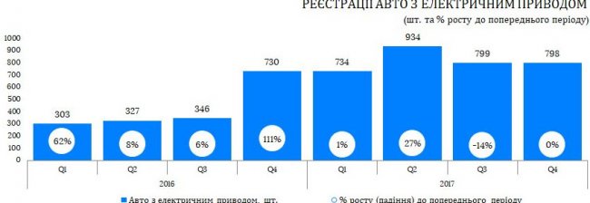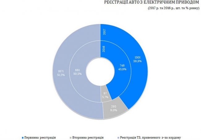 Согласно последним данным МВД, за 2017 год в Украине было зарегистрировано 3265 автомобилей с электрической силовой установкой. Этот показатель почти в два раза (если быть точным: на 91%) превышает прошлогоднее достижение. При этом первичные регистрации составили почти 40% от всего объема зарегистрированных электромобилей.