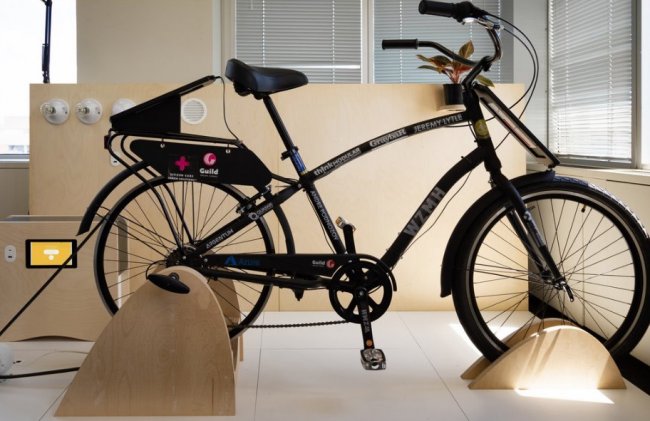 MySUN предполагает простое и быстрое соединение компонентов. В качестве одного из них предусмотрен велотренажер Sunrider. С его помощью пользователи смогут превращать свою мускульную силу в электричество, накапливающееся в аккумуляторе, встроенном в устройство. Во время езды на велосипеде человек развивает мощность 100–150 Вт. Так что занятия на Sunrider позволят выработать энергию, достаточную, например, для освещения помещения площадью 28 м2 в течение суток.