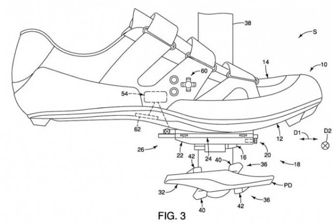 Недавно полученный компанией Shimano патент описывает хитроумную систему регулировки велосипедной обуви с использованием электрического привода. Положение обуви изменяется относительно педалей в зависимости от усилия нажатия, частоты вращения, перехода с гравийной дороги на дорогу с твердым покрытием или же при поступлении определенного сигнала GPS. Для этого ботинки и велосипед предлагается оснастить целым массивом датчиков.