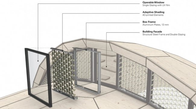 В ходе тестирования 424 элемента Solar Gate были установлены на восьми окнах, чьи двухслойные рамы имели отверстия. Через них воздух с улицы свободно попадал внутрь и циркулировал между рамами, поэтому влажность внутри окон менялась в соответствии с погодой снаружи. Стеклянные на вид чешуйки исправно скручивались влажной зимой, открывая доступ свету извне внутрь помещений. И оставались раскрытыми теплым летом, блокируя свет и сохраняя прохладу внутри здания.