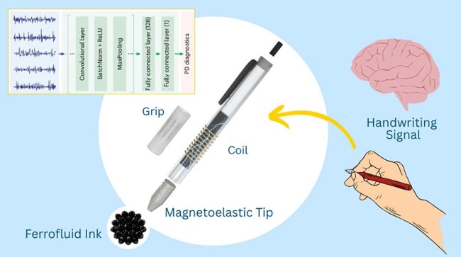 Цзюнь Чен и его коллеги из Калифорнийского университета в Лос-Анджелесе разработали эффективный детектор ранних симптомов болезни Паркинсона. Он выполнен в форме обычной ручки для письма и не требует никаких особых навыков для применения. Этой ручкой не получится ничего написать, но она очень точно анализирует движения рук и помогает выявить мельчайший тремор, который и указывает на болезнь Паркинсона.
